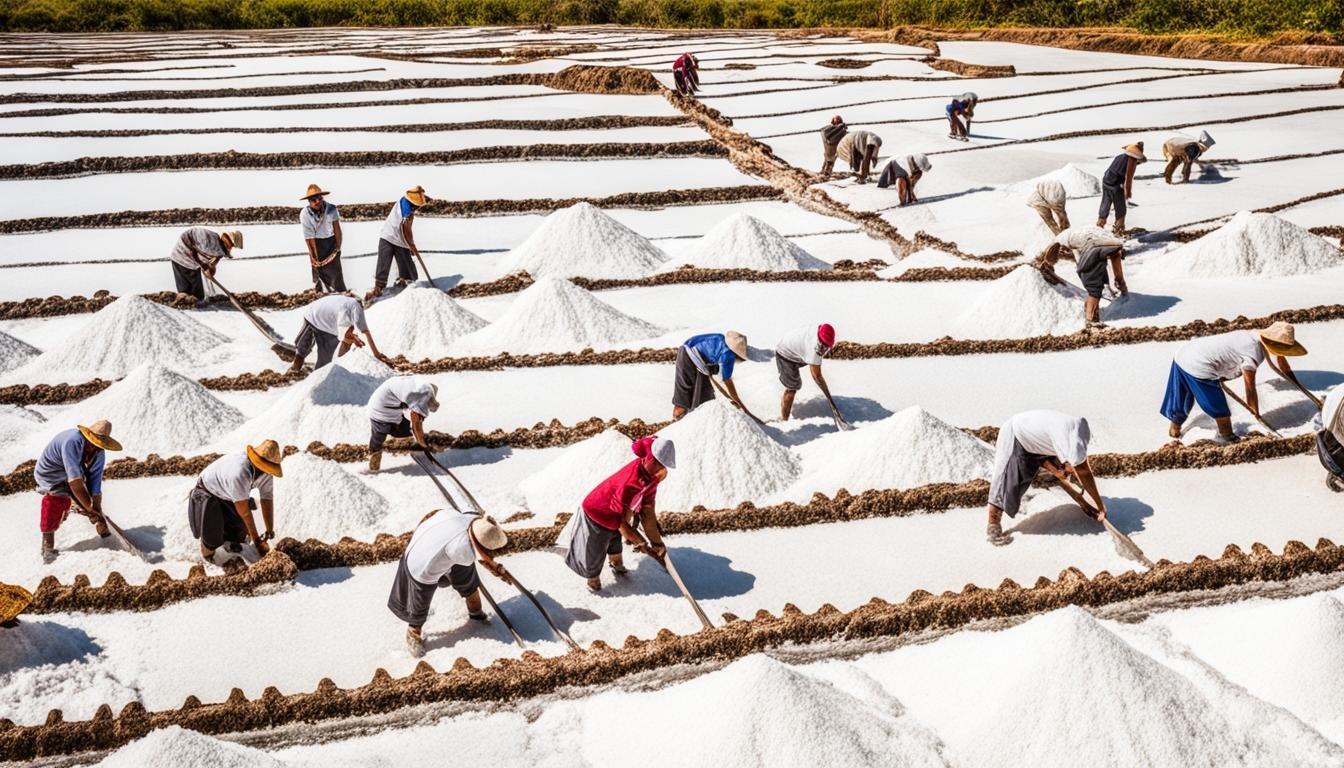 - Salt is harvested in rectangular pans called “asinan”, which are shallow beds for evaporation.