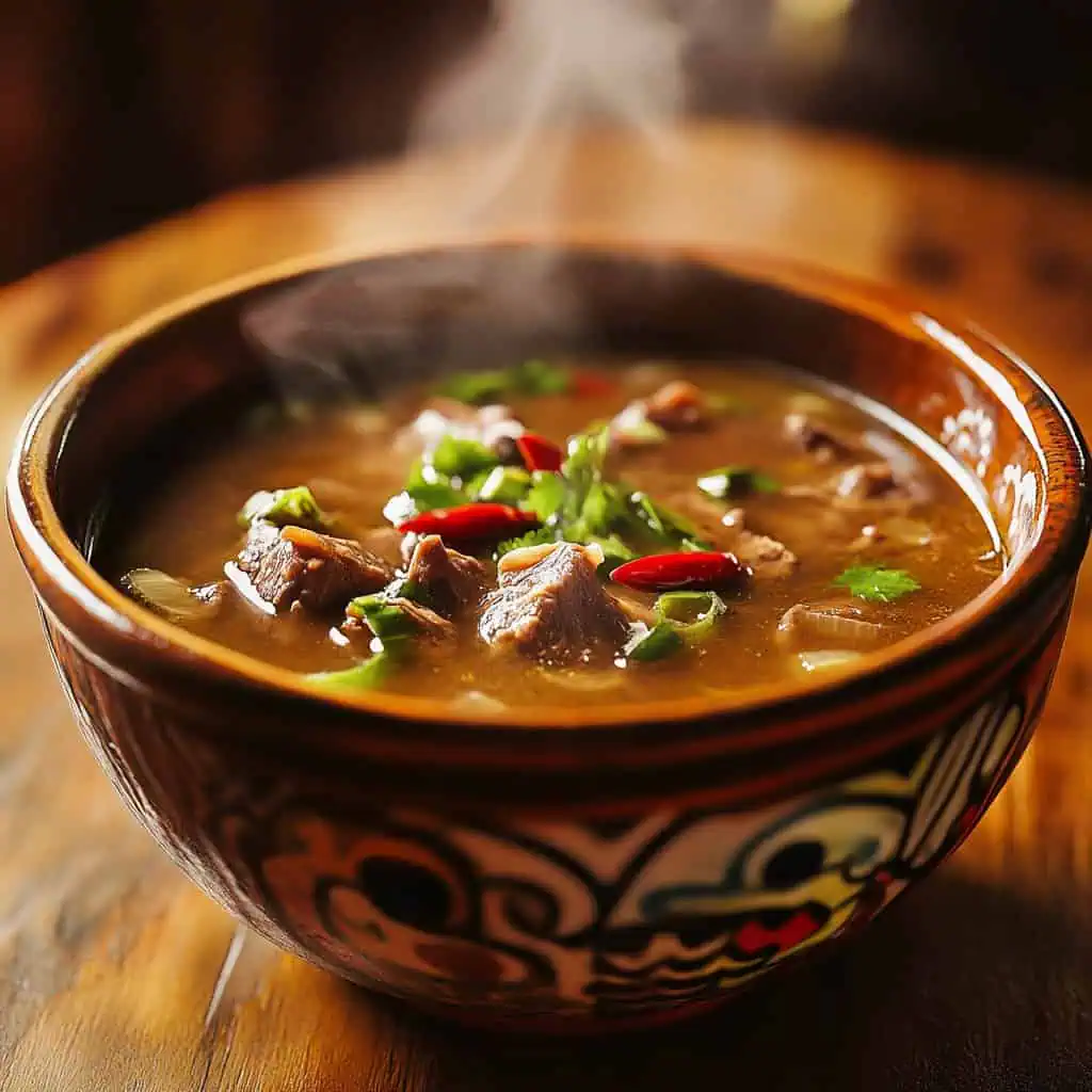 Kaleskes is a traditional stew from the province of Pangasinan in the Philippines, recognized as a hearty street or home-style dish made from beef innards and other offal. It is appreciated for its rich, savory broth and its connection to local culinary heritage.